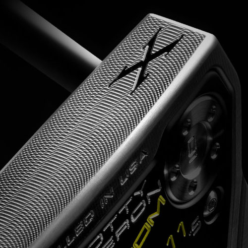 The Phantom X line marks the debut of the new Pistolero Plus grip in cement gray with gloss black paintfill. The Pistolero Plus is a modified Pistolero grip with a thicker, less tapered right (low) hand that combines the tour-preferred performance and feel of a rubber Pistolero-style grip with a slightly built-up feel perfectly suited to mallet putters.